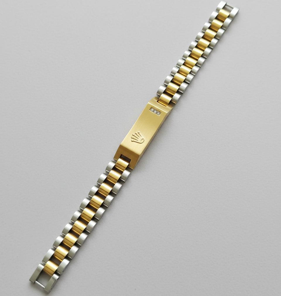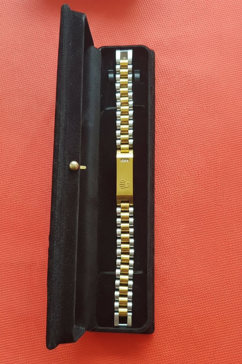 Elevate your wristwear with the Royal Gleam Dual-Tone Bracelet — a timeless fusion of gold luxury and silver sophistication. Designed for the modern trendsetter, this bracelet delivers a bold yet refined look that complements every outfit. Its smooth polish and durable links ensure both comfort and elegance for daily wear or special occasions.